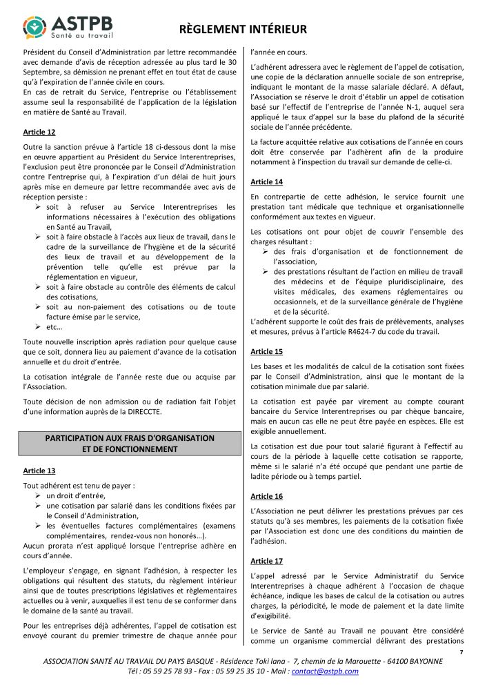 STATUTS / RÈGLEMENT INTÉRIEUR